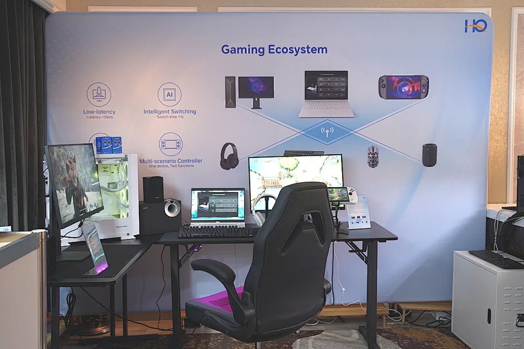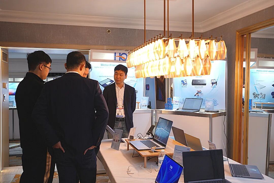 在PC业务展区,华勤技术以“全场景交付+AI深度融合”为核心,展示了其在智慧商业领域的综合实力。展品涵盖1kg轻薄本、可插拔摄像头笔记本、AI本、游戏本、打印机、显示器、X86平台掌机等,覆盖从高性能娱乐到高效办公的全场景需求,充分体现了公司在整机、外设及系统方案上的综合设计能力。